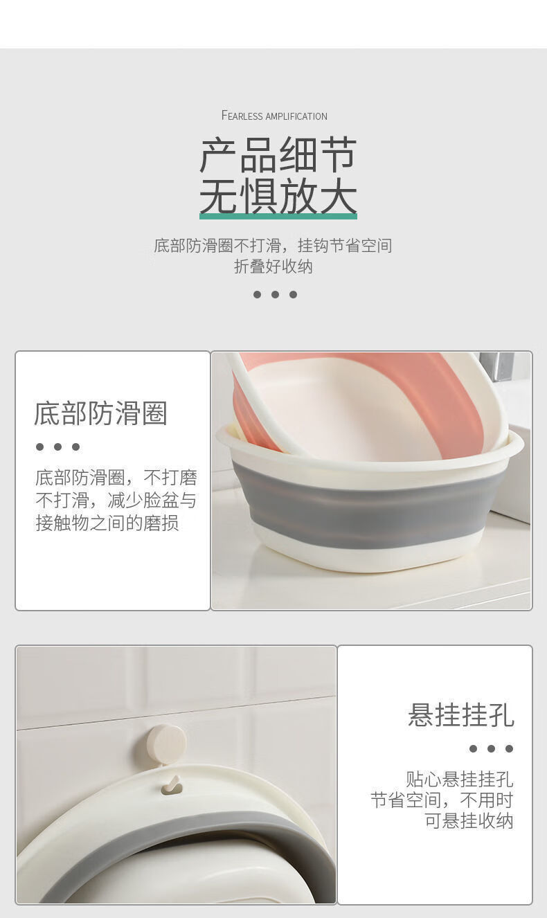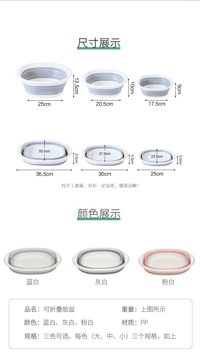 郦狼户外旅行折叠脸盆塑料盆婴儿洗衣脸盆宿舍学生家用便携式加厚 粉白色(中号)