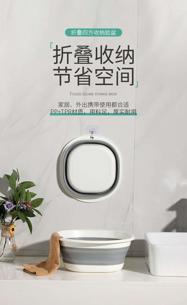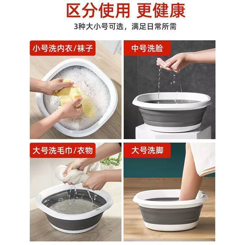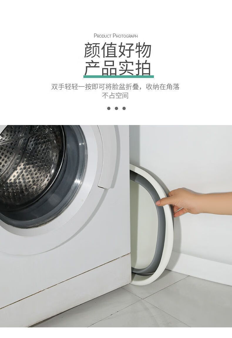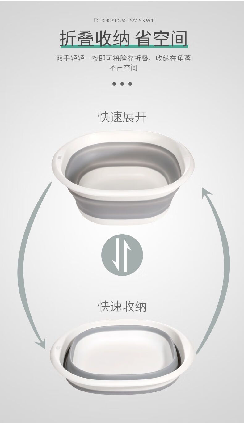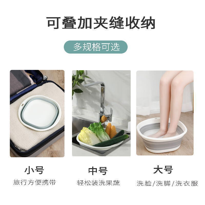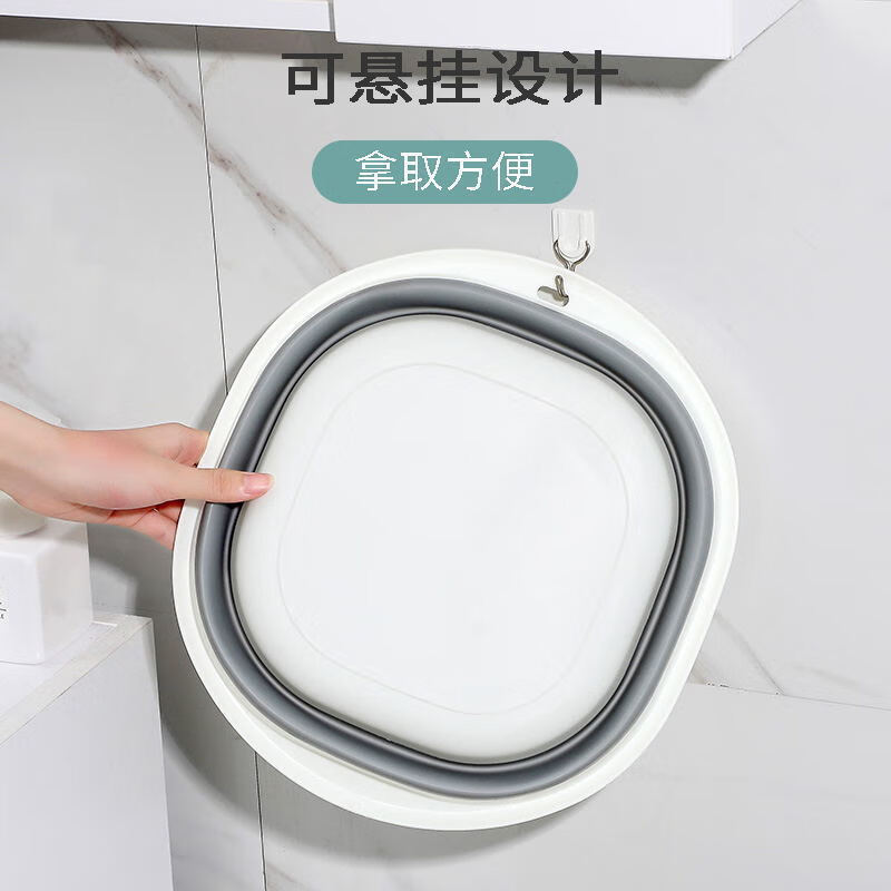 可折叠洗脸盆学生宿舍便携式户外旅行家用塑料折叠式洗菜洗衣盆子 灰白色大号折叠盆