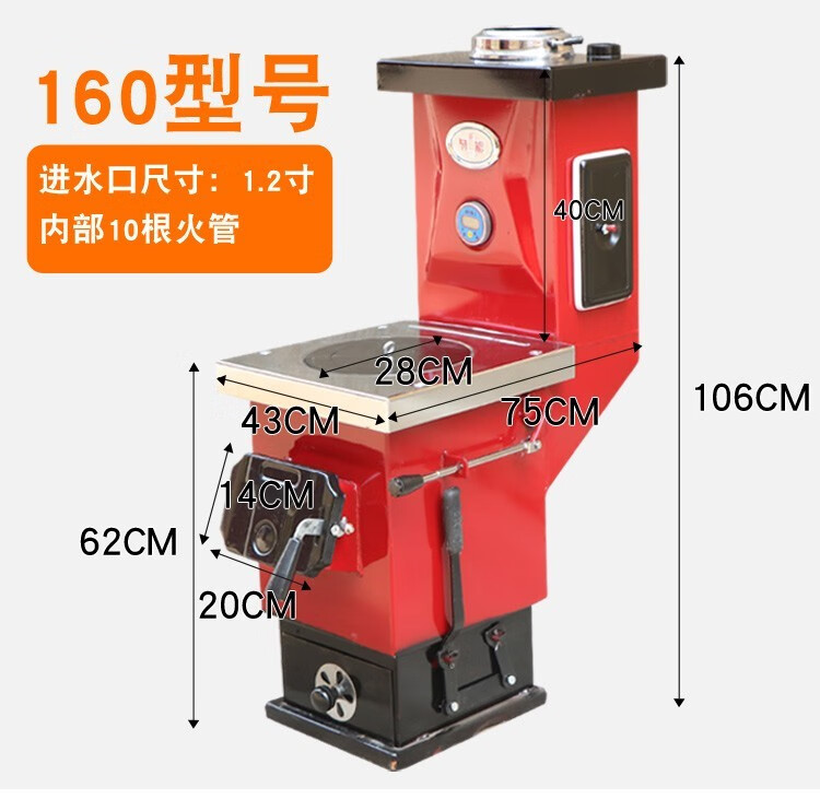 亿骁 锅炉燃煤家用节能暖气炉农村带暖气片取暖炉子小型反烧锅炉 通天通炕双气化160型【加厚圆孔】