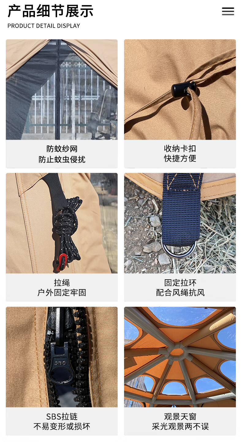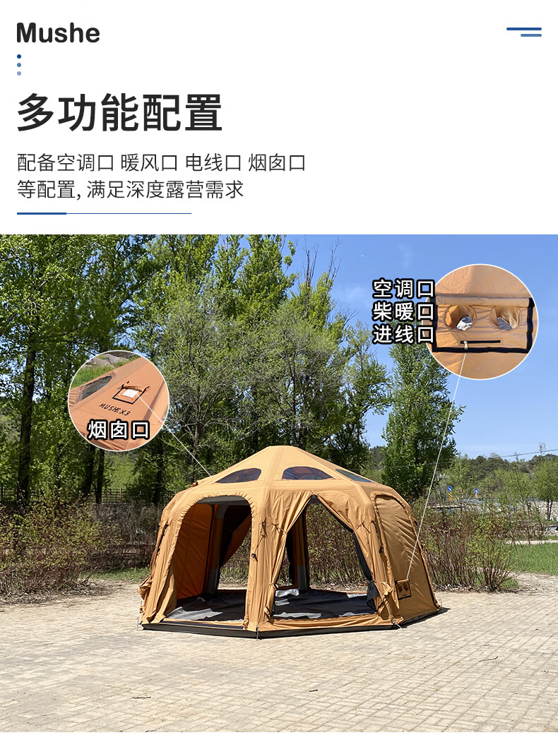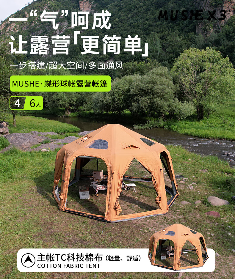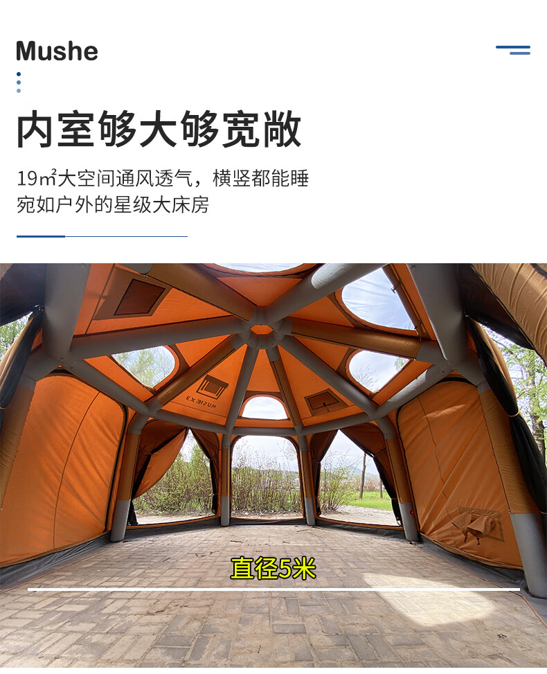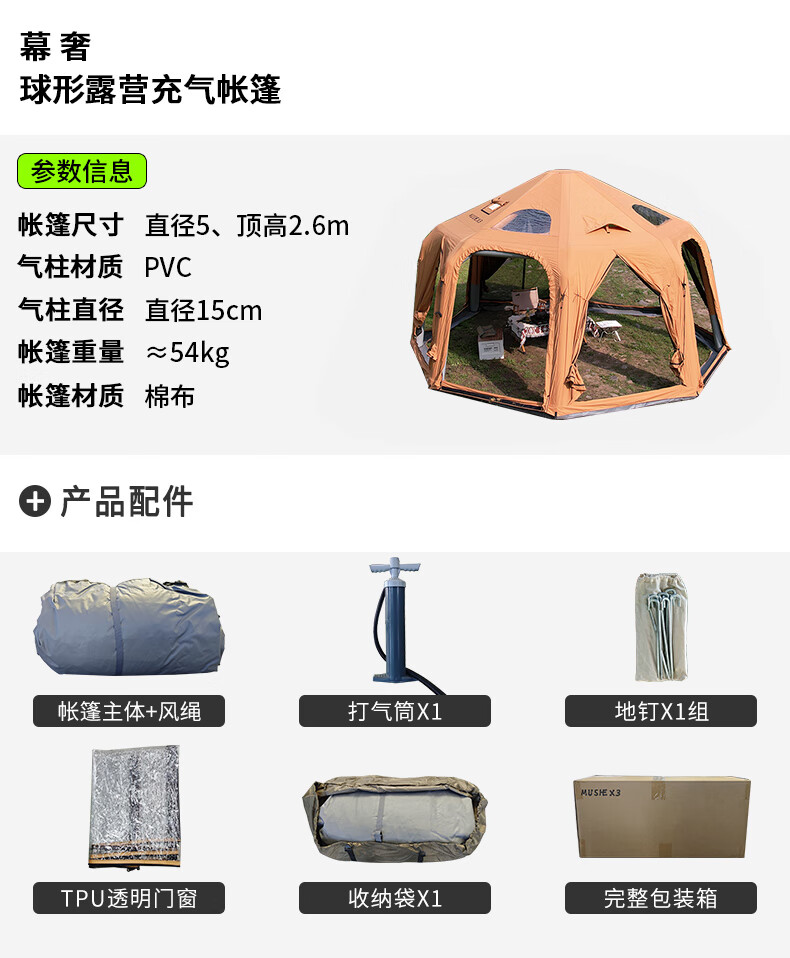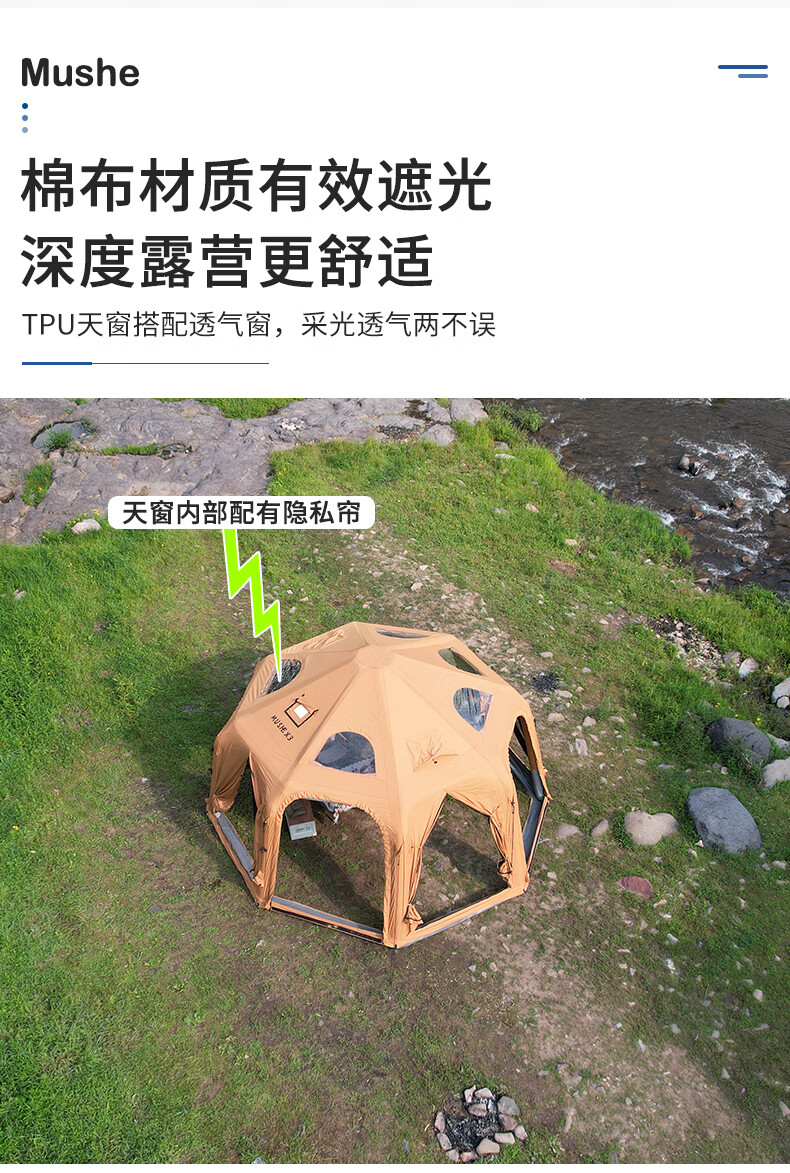 幕奢mushe-X3球型帐篷19㎡超大空间露营棉布充气帐篷加高防雨活地布 卡其色