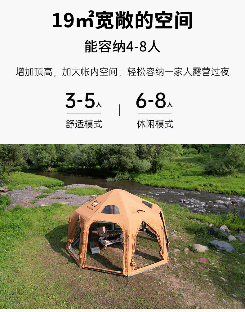京诚豪斯JcHouse17.2㎡棉布充气帐篷精致露营17.2平户外搬家过夜屋脊 豪斯17.2平米色主帐+黑胶天幕