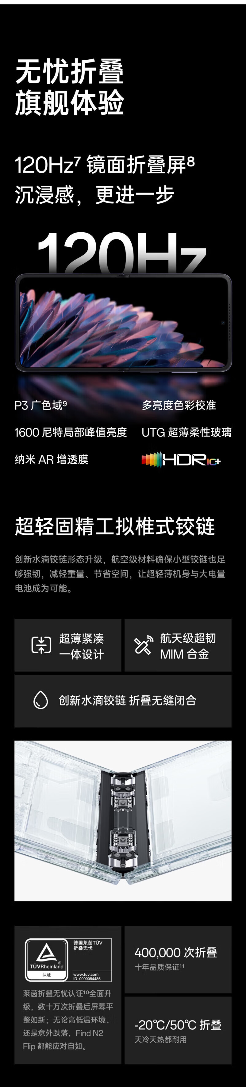 OPPOFind N2 Flip 5G通折叠屏 120Hz镜面屏 5000万 手机 流金 5G通_套餐一_靓机_16GB+512GB_中国大
