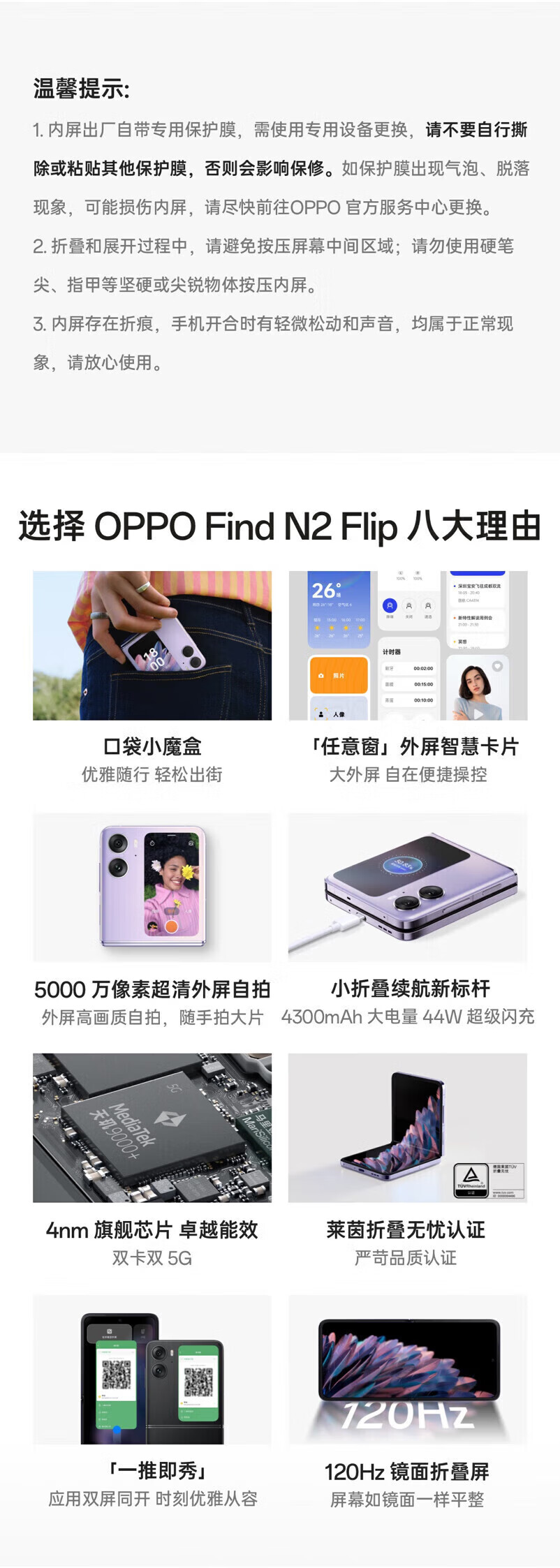 OPPOFind N2 Flip 任意窗 5000万超清自拍 120Hz镜面屏 通5G小折叠屏 慕紫 16GB+512GB