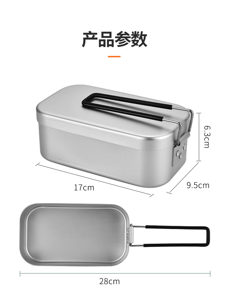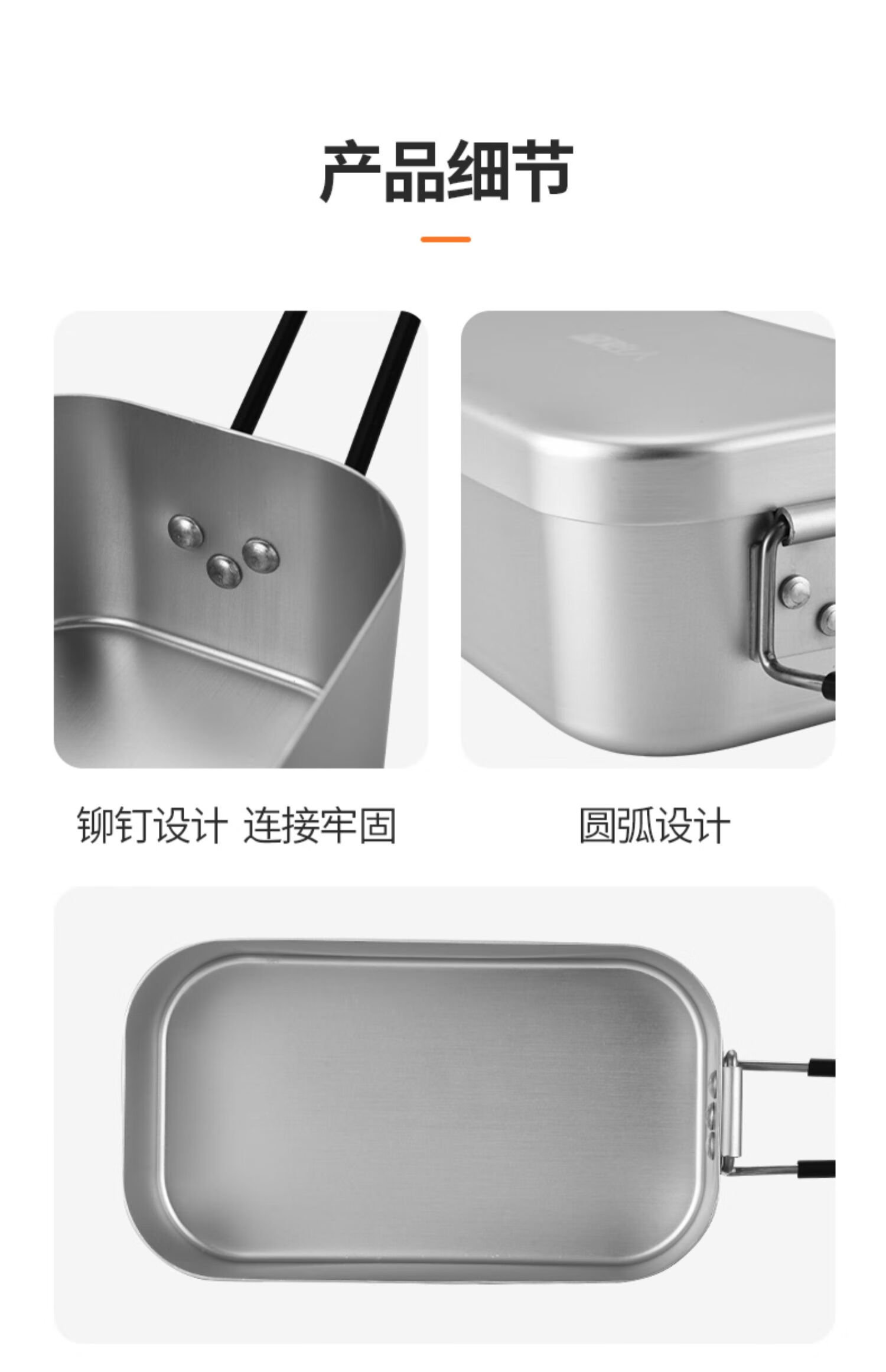 驴小贝户外铝制饭盒露营可明火加热铝合金日式野炊不锈钢餐具复古野餐盒 铝饭盒-800ML(带裙边)