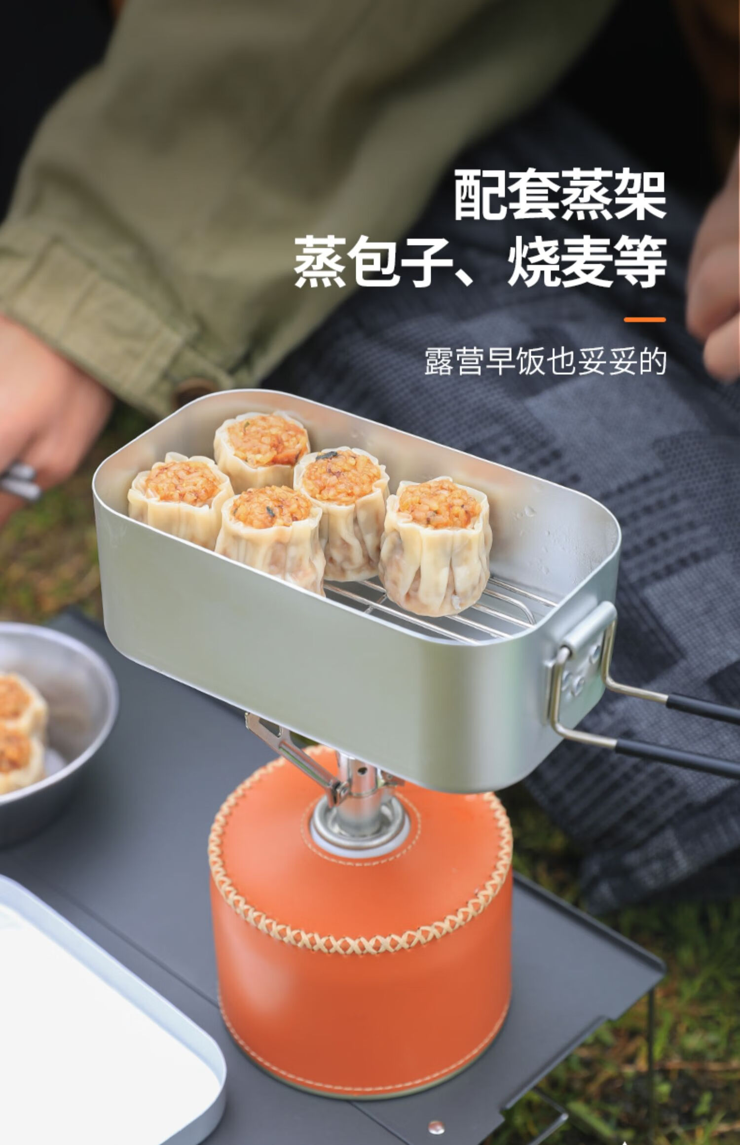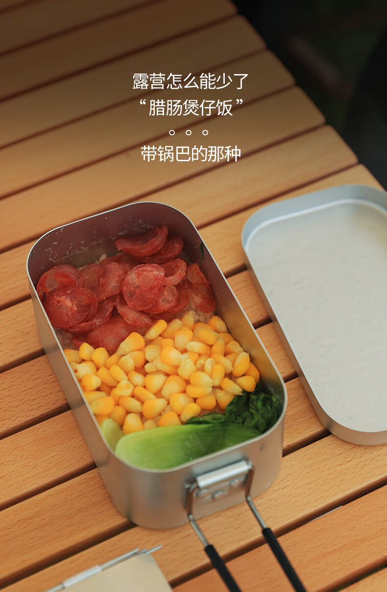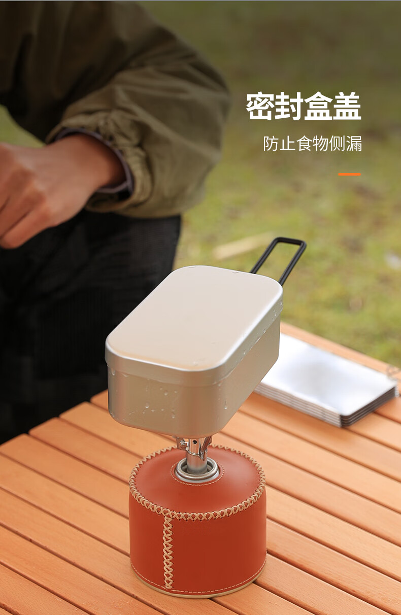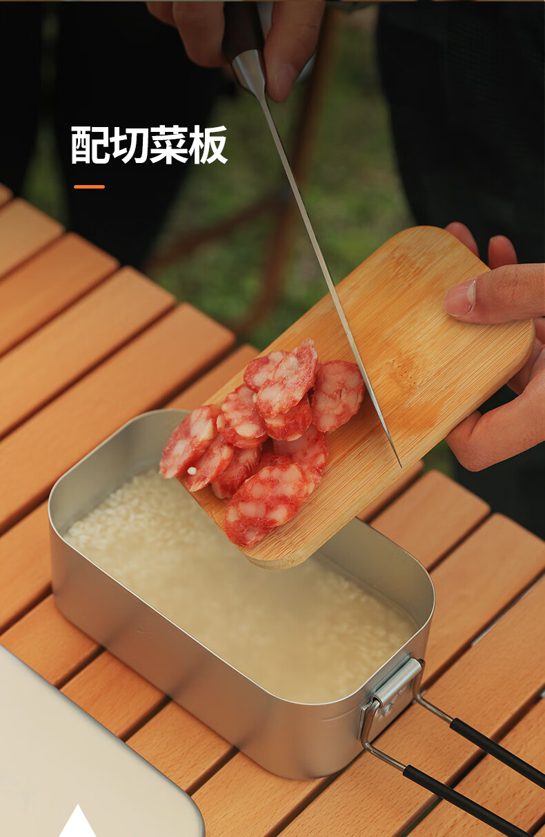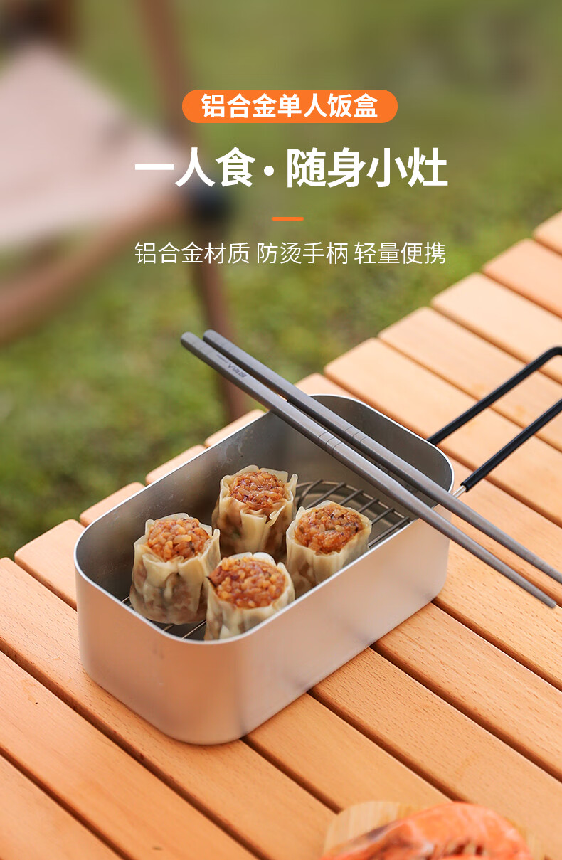 原始人户外餐具露营铝合金饭盒野炊用品野营野餐便携便当煮饭神器 800ML铝合金饭盒(含菜板蒸架)