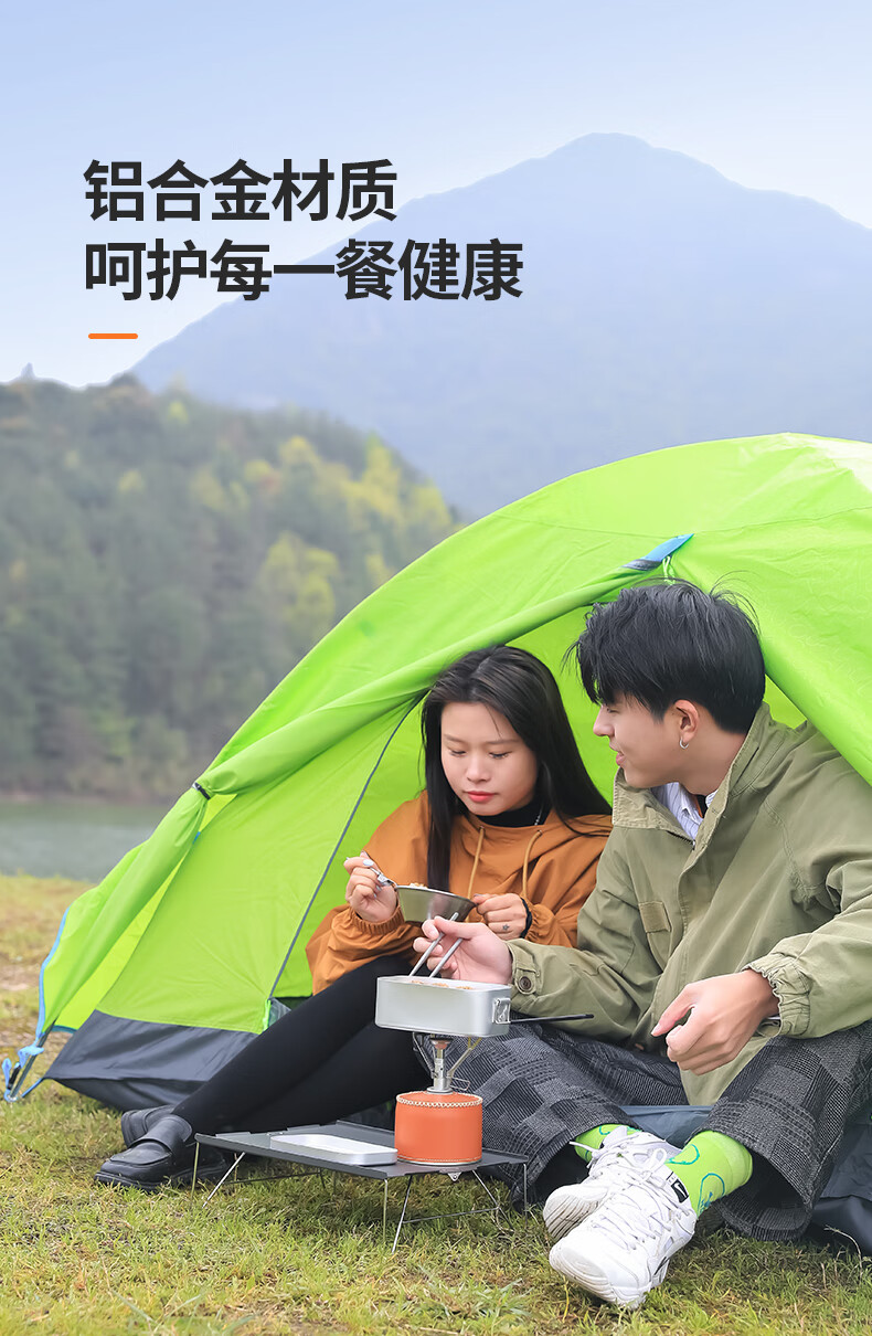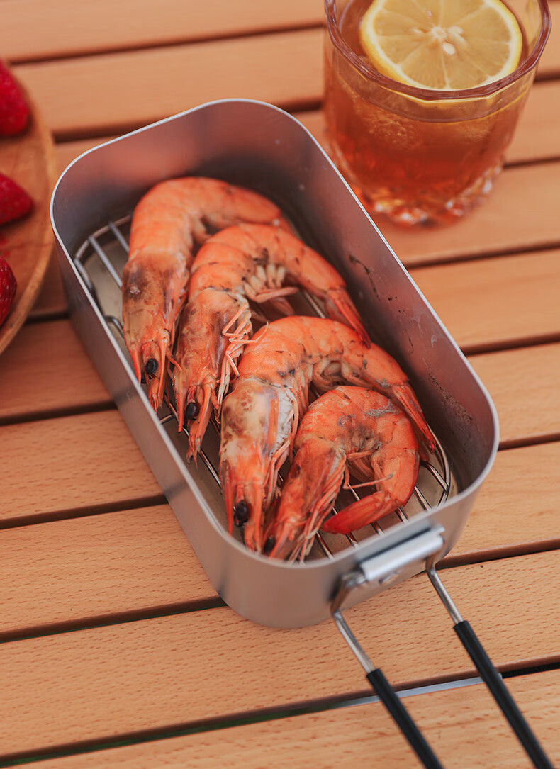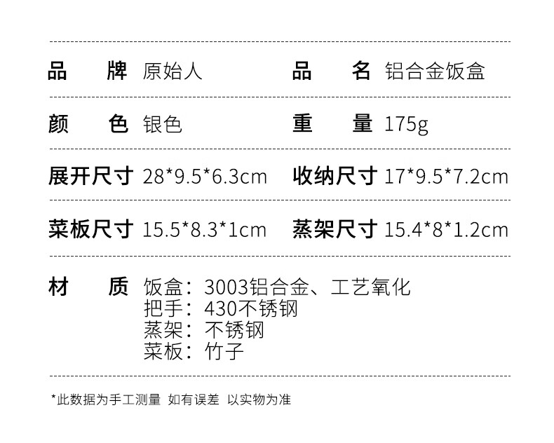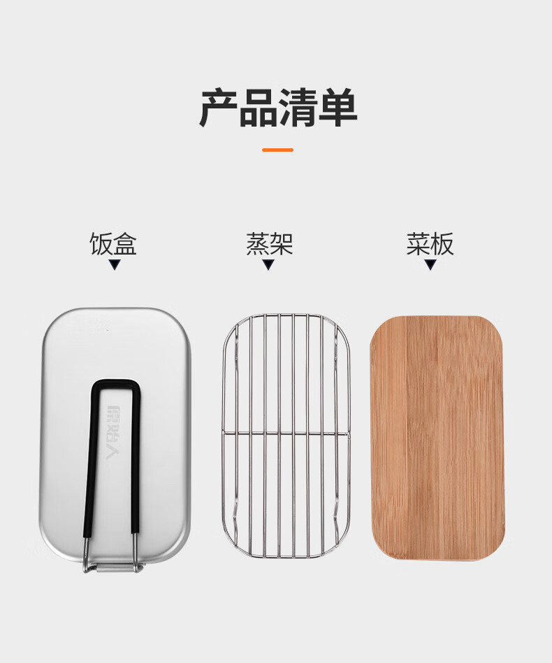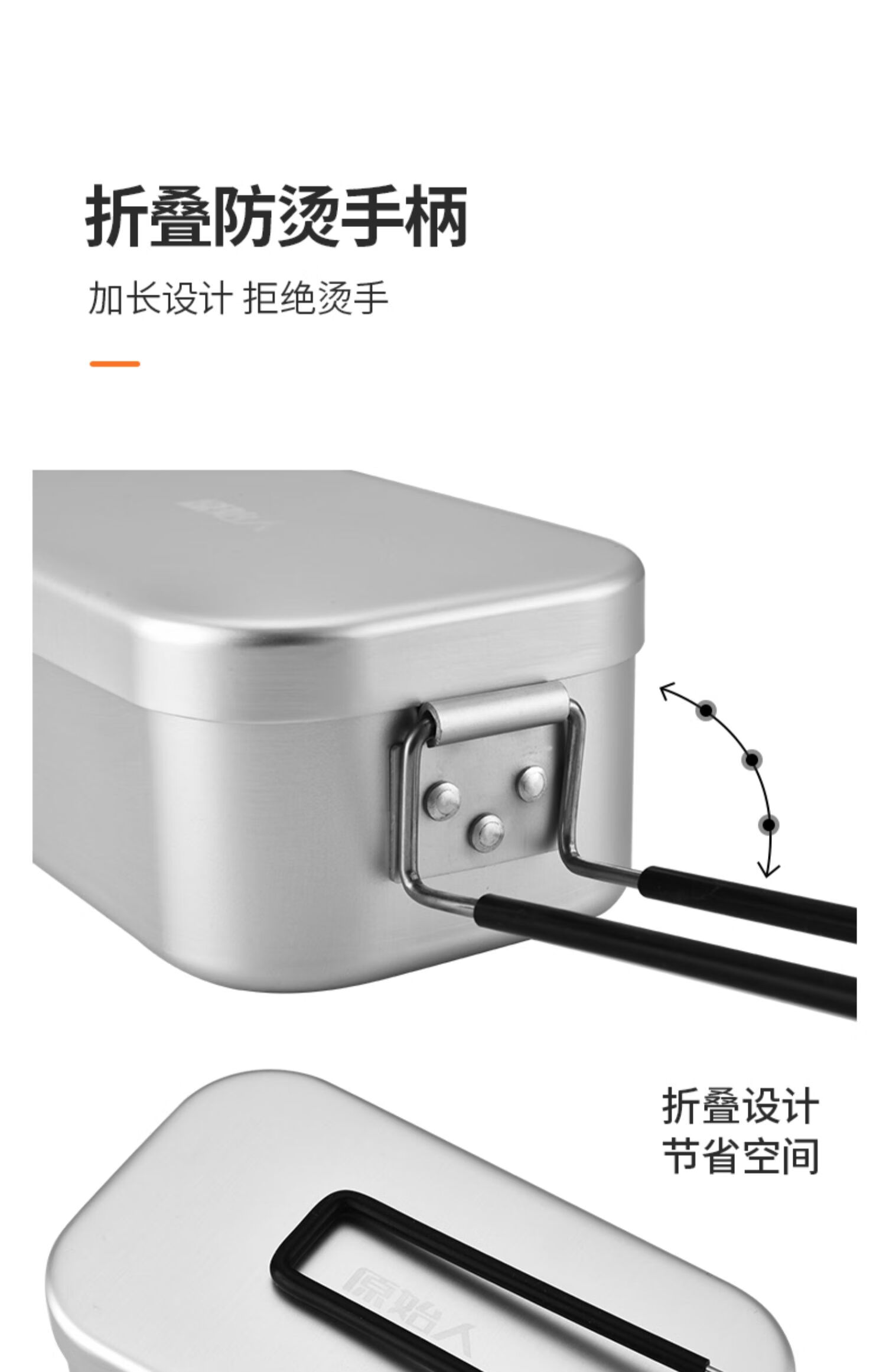 原始人户外餐具露营铝合金饭盒野炊用品野营野餐便携便当煮饭神器 800ML铝合金饭盒(含菜板蒸架)