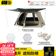 探险者帐篷户外露营野外大帐篷速开一键开合便携式野餐加厚防雨遮阳防晒 环亭卡其六角+防潮垫+桌椅套装