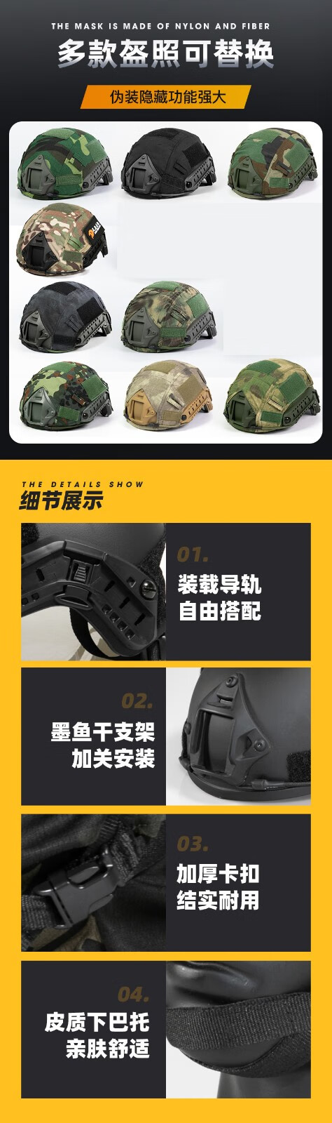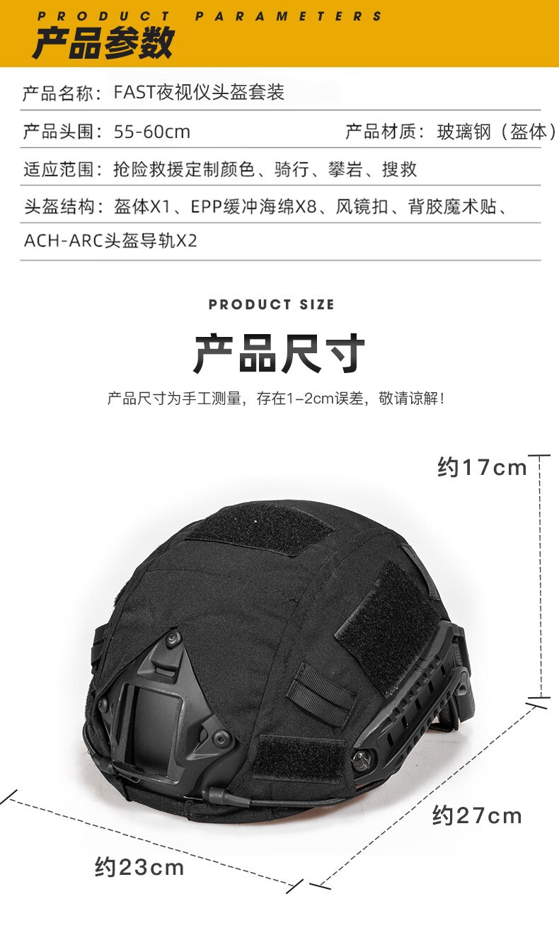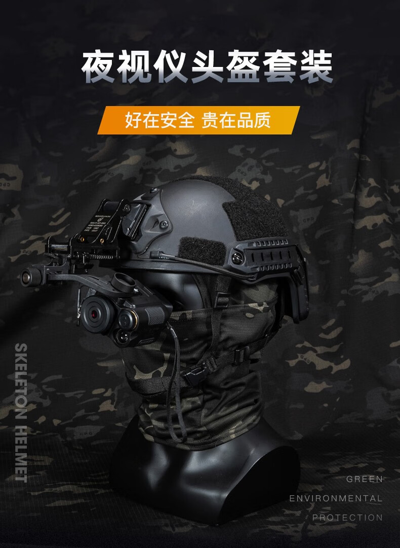 凰一 FAST战术头盔防护训练玻璃钢头盔布套盔套虎斑特战头盔 1.3kg玻璃钢盔+新绿盔套