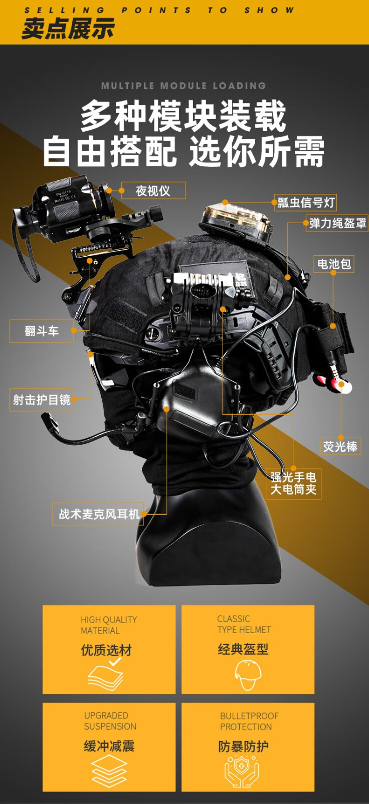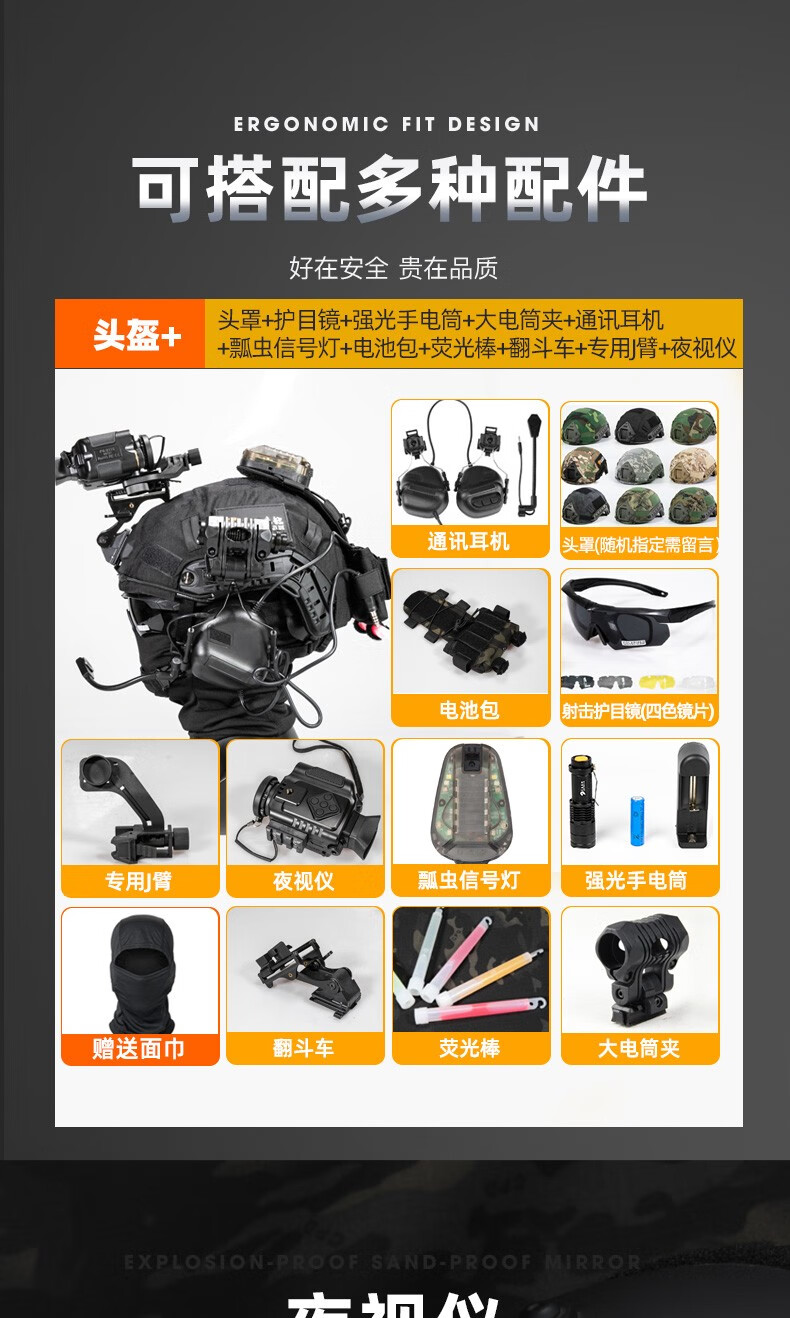 星凰 户外Fast玻璃钢战术头盔虎斑防暴训练头盔护目镜套装 1.5kg玻璃钢头盔【套装三】