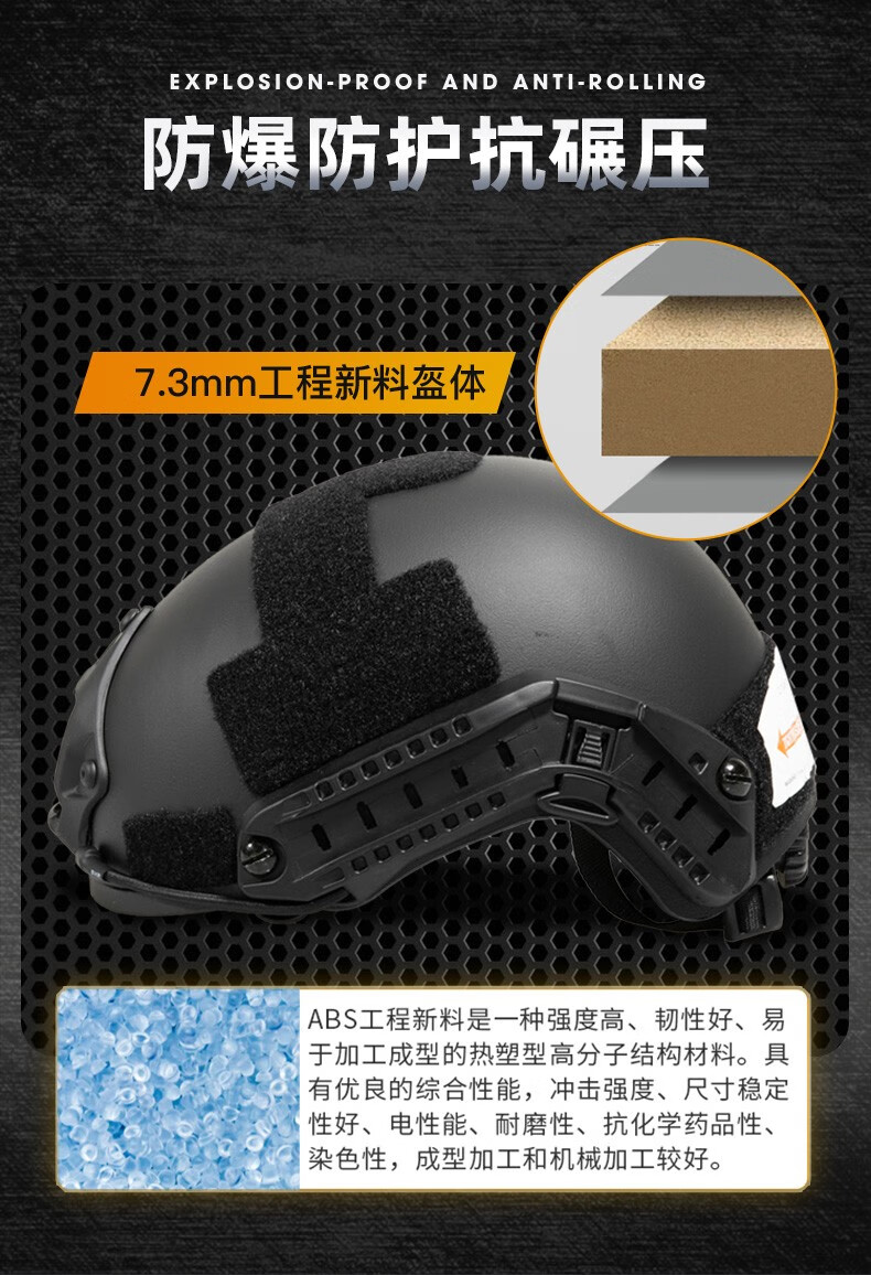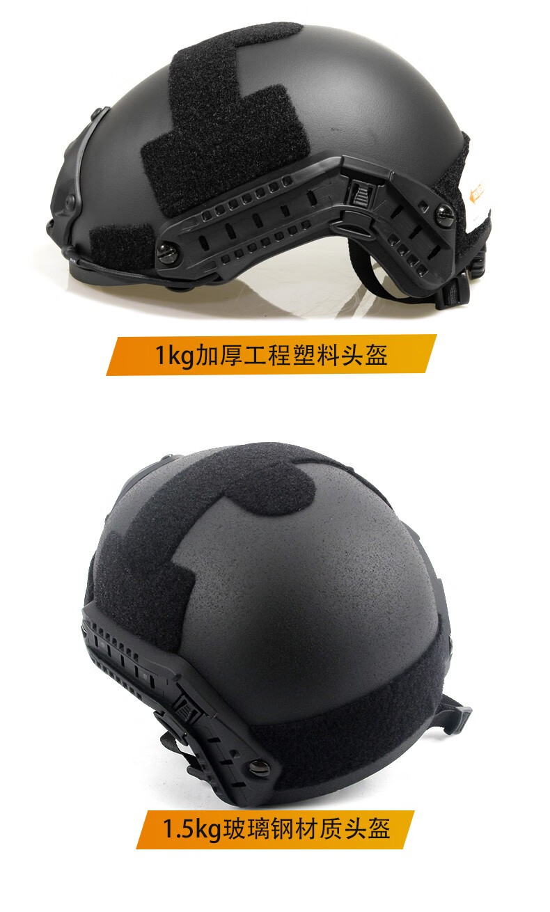 战术兵美式MICH2000战术头盔凯夫拉训练头盔户外军迷CS骑行轻量盔导轨版 黑色