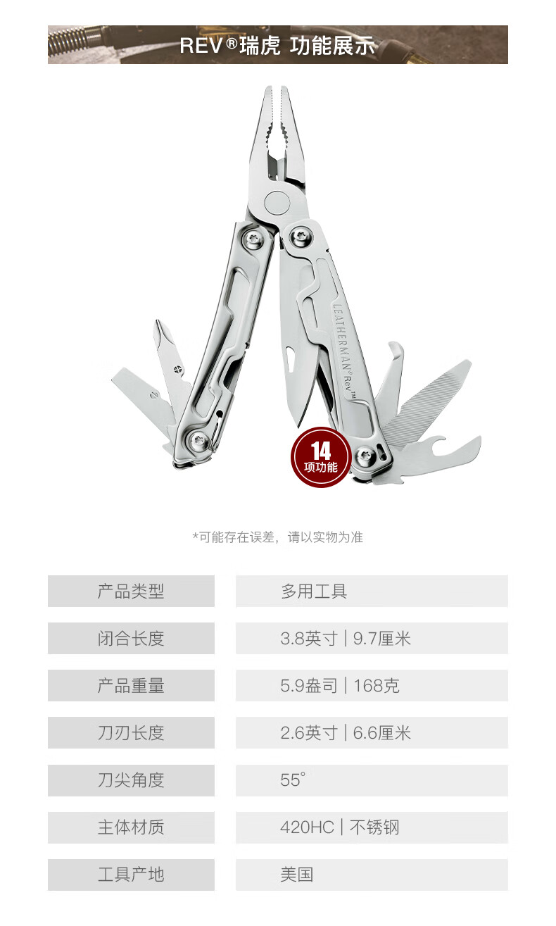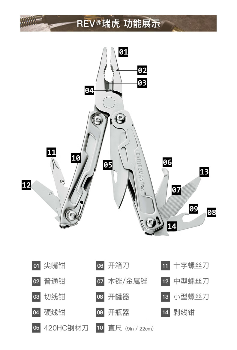 莱特曼(LEATHERMAN)美国莱泽曼多功能工具钳REV瑞虎多用组合钳子随身edc户外防身装备