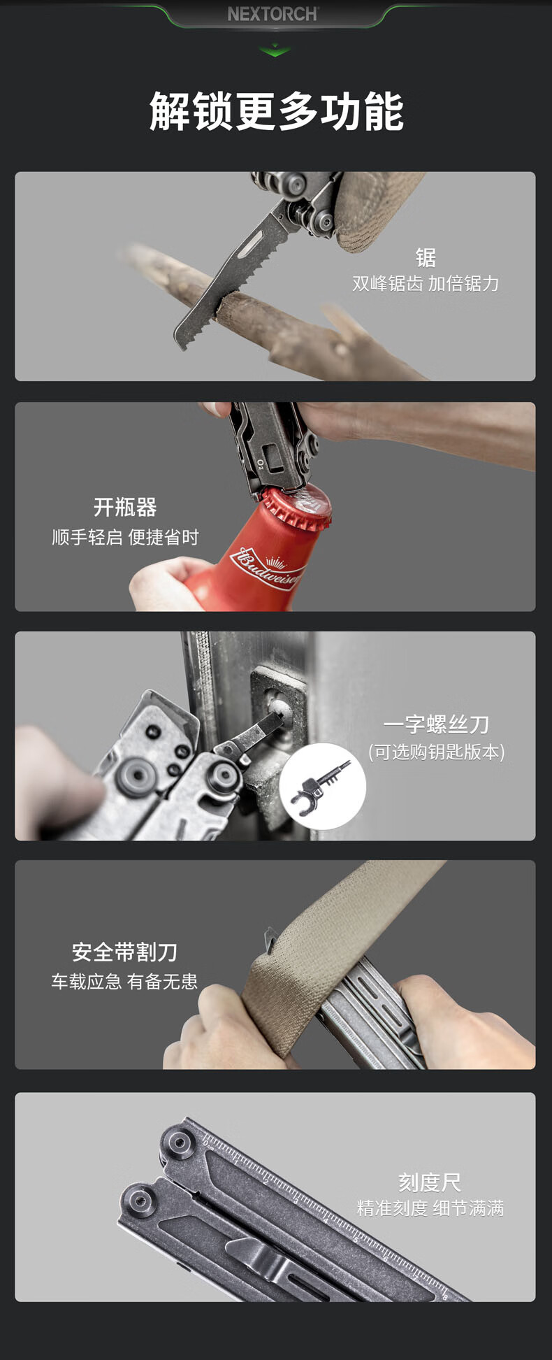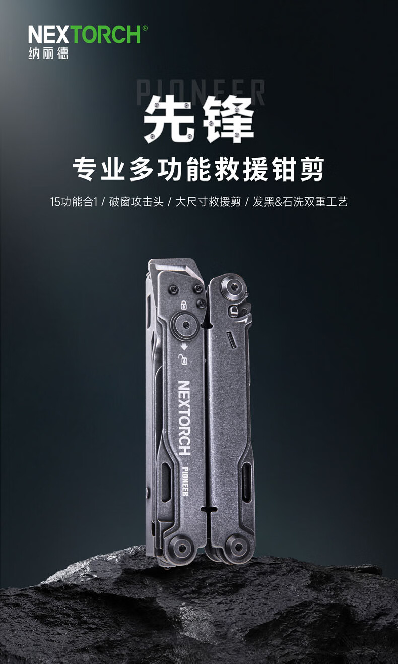 纳丽德(NEXTORCH)PIONEER先锋钳子应急救援多功能工具钳户外露营求生便携钳剪小刀 “十四合一”工具钳(含尼龙套)