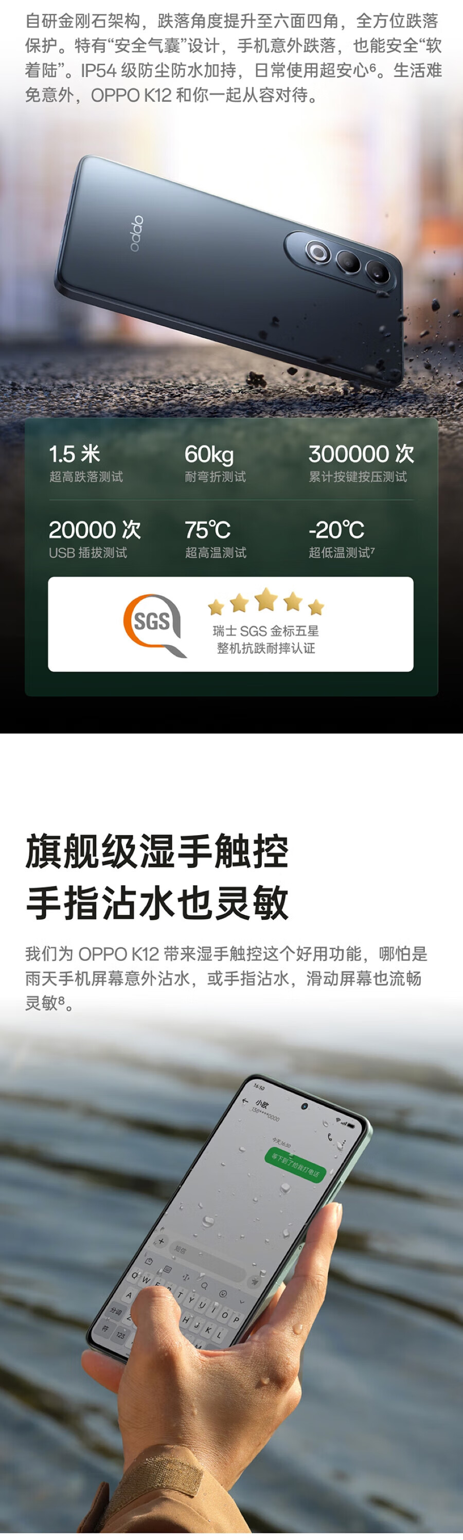 OPPOK12 第三代骁龙7旗舰芯 闪充超长续航直屏5G展机 全网通拍照手机 星夜 12GB+512GB 单机+原装快充+店保1年