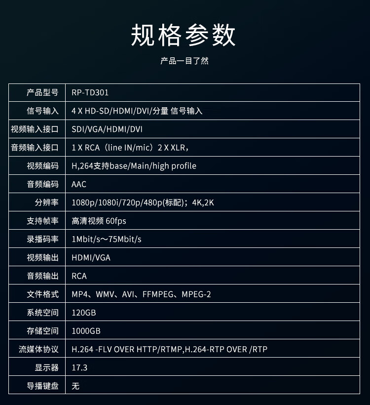 润普 便携式录播一体机 网络直播录播主机 一体化虚拟演播室系统 RP-TD301